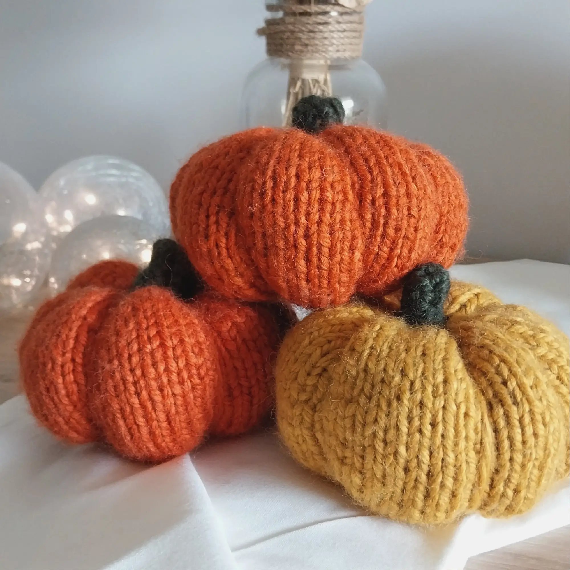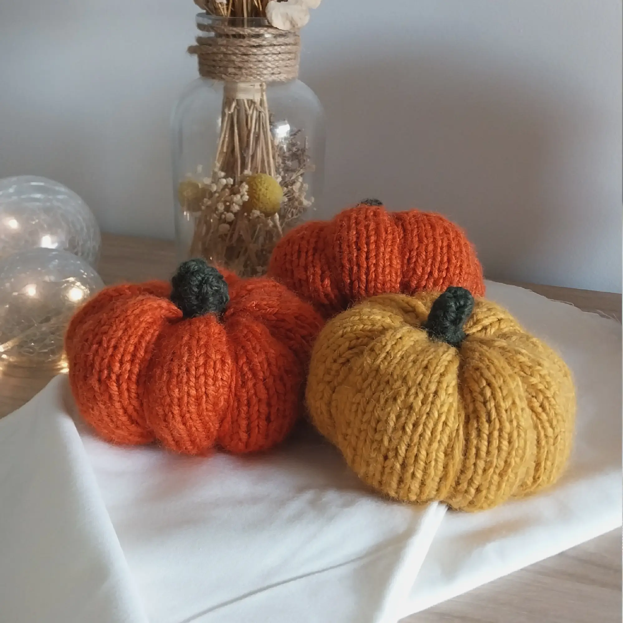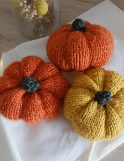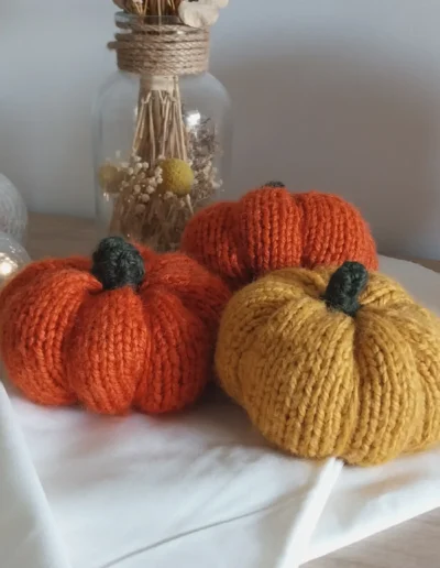 Réalisée avec un fil 55% laine et 45% acrylique, cette citrouille est douce avec un petit aspect pelucheux qui lui donne un côté très cosy. Je l’ai réalisé en orange et en jaune, mais si vous souhaitez une autre couleur, je peux aussi la faire en vert ou crème (ou autre couleur) ! Envoyez-moi un petit message dans ce cas 🙂